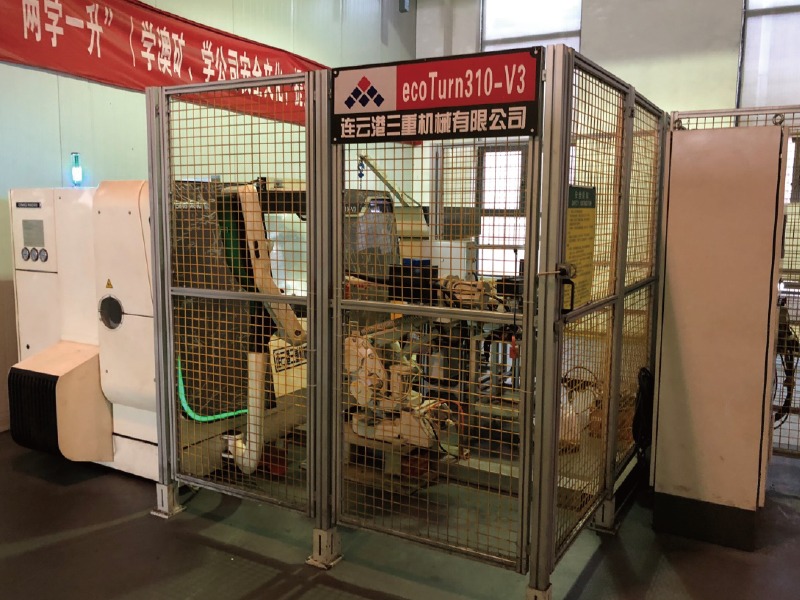該設備集自動化上料、加工、激光打碼、下料等功能為一體,采用六軸機器人取代人工,提高加工效率,降低安全風險。